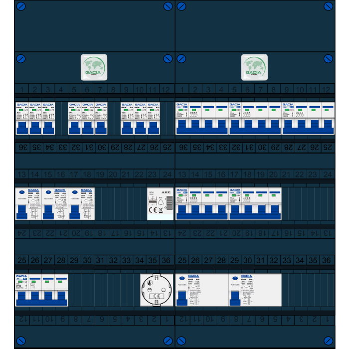De GACIA GACK serie groepenkast is een typische woningbouw verdeler welke zeer geschikt is voor renovatie en nieuwbouw toepassingen. Doordat de breedte van 220mm gelijk is aan de oude groepenkast is het uitwisselen zeer eenvoudig en hoeft er weinig te worden aangepast. Buiten de standaard leverbare groepenkasten is het mogelijk om een klant-specifieke oplossing aan te vragen. Deze kasten zijn eenvoudig uit te breiden. Alle groepenkasten worden in eigen beheer geassembleerd en getest. Alle componenten worden onder spanning getest, de gebruikte aansluitmaterialen zijn specifiek ontworpen voor deze toepassing. Iedere schroef wordt met de hand aangedraaid op de juiste aandraaimoment.