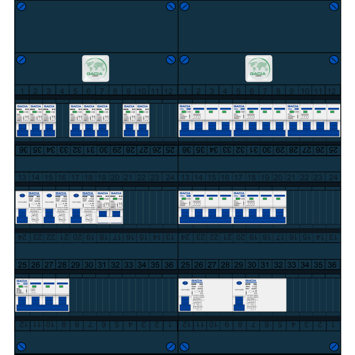 De GACIA GACK serie groepenkast is een typische woningbouw verdeler welke zeer geschikt is voor renovatie en nieuwbouw toepassingen. Doordat de breedte van 220mm gelijk is aan de oude groepenkast is het uitwisselen zeer eenvoudig en hoeft er weinig te worden aangepast. Buiten de standaard leverbare groepenkasten is het mogelijk om een klant-specifieke oplossing aan te vragen. Deze kasten zijn eenvoudig uit te breiden. Alle groepenkasten worden in eigen beheer geassembleerd en getest. Alle componenten worden onder spanning getest, de gebruikte aansluitmaterialen zijn specifiek ontworpen voor deze toepassing. Iedere schroef wordt met de hand aangedraaid op de juiste aandraaimoment.