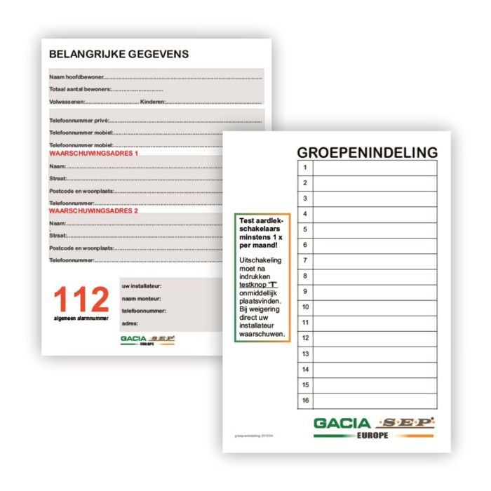 SEP / GACIA Groepenverklarings vel (set 10 stk)