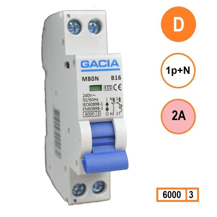 GACIA M80N-D02 inst. 1p+n D2 6kA (18mm)