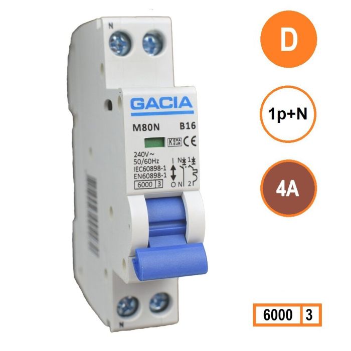 GACIA M80N-D04 inst. 1p+n D4 6kA (18mm)