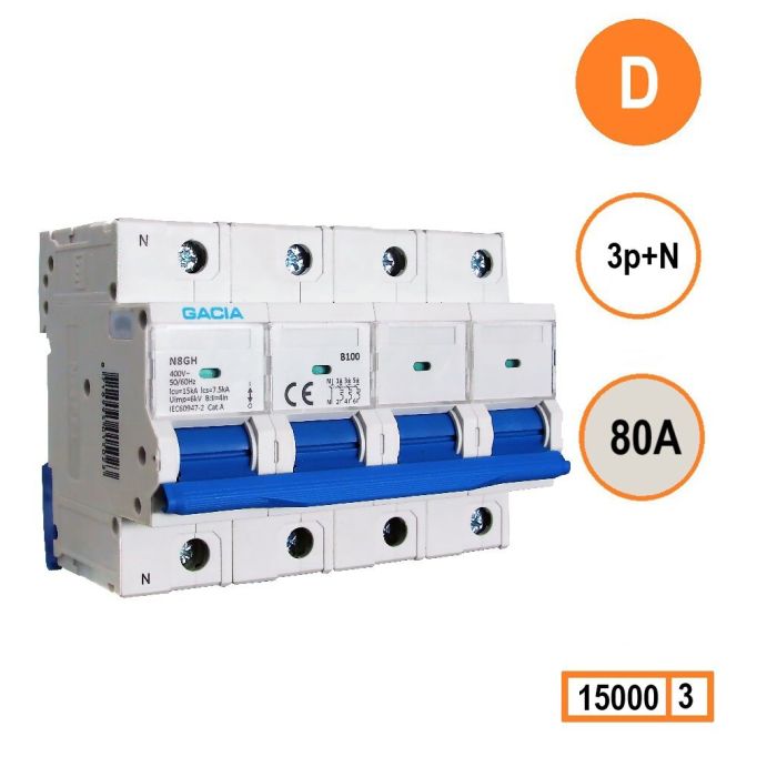 GACIA N8GH installatieautomaat 3p+n, karakteristiek D, 80A, 15kA