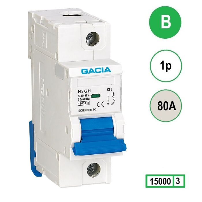 GACIA N8GH installatieautomaat 1 polig, karakteristiek B, 80A, 15kA