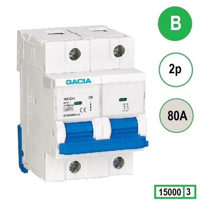 GACIA N8GH installatieautomaat 2 polig, karakteristiek B, 80A, 15kA