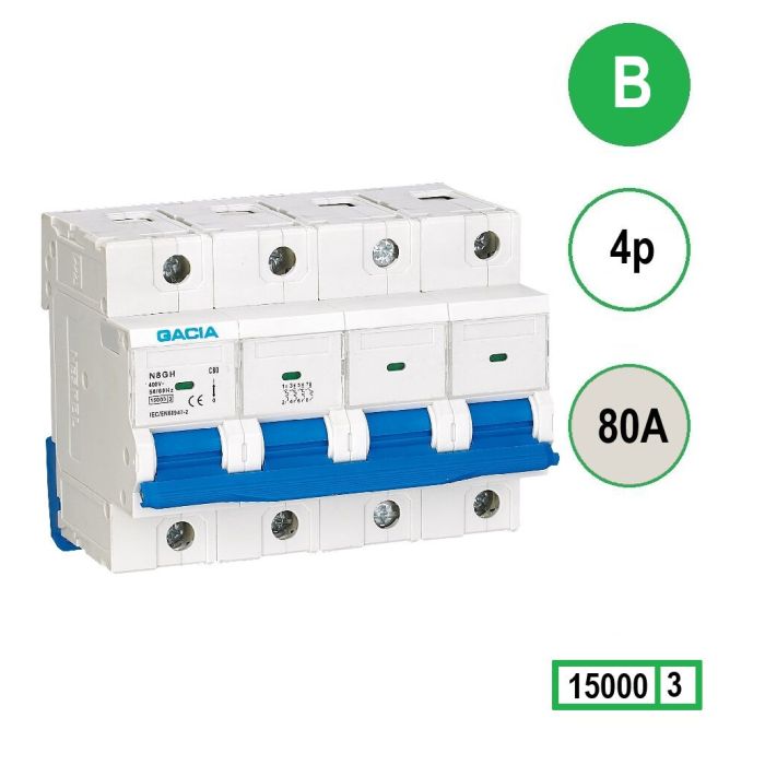 GACIA N8GH installatieautomaat 4 polig, karakteristiek B, 80A, 15kA