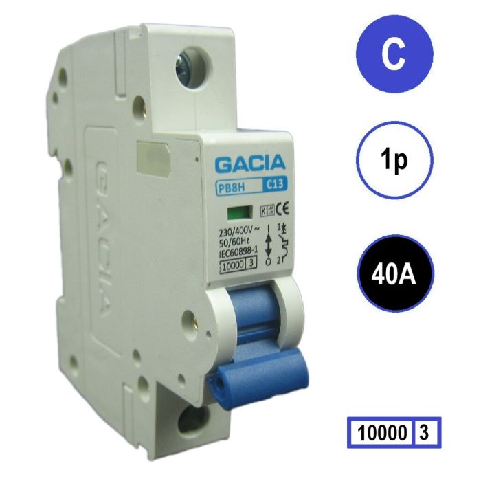 GACIA installatieautomaat 1p, C-karakteristiek, 40A, 10kA