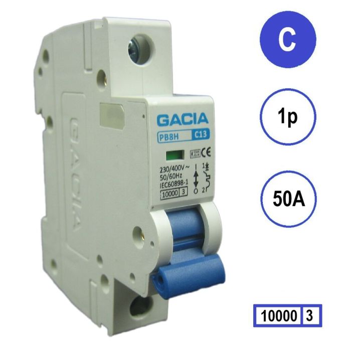 GACIA installatieautomaat 1p, C-karakteristiek, 50A, 10kA