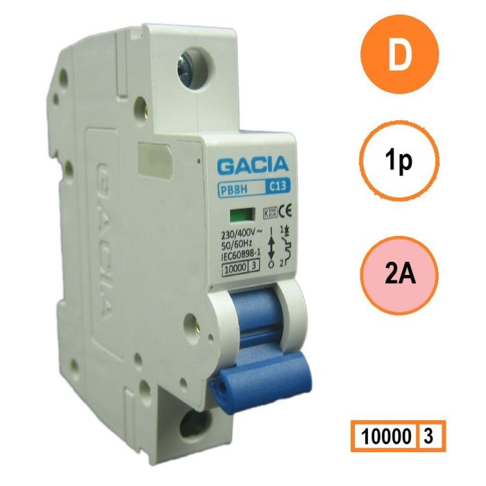 GACIA installatieautomaat 1p, D-karakteristiek, 2A, 10kA