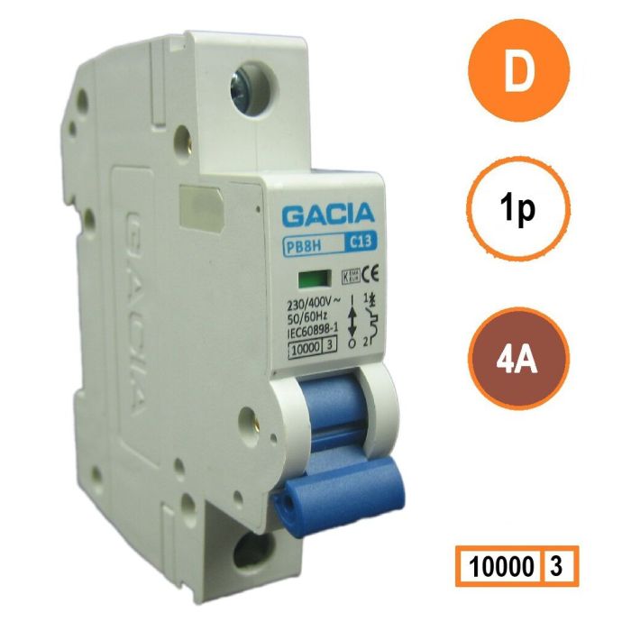 GACIA installatieautomaat 1p, D-karakteristiek, 4A, 10kA
