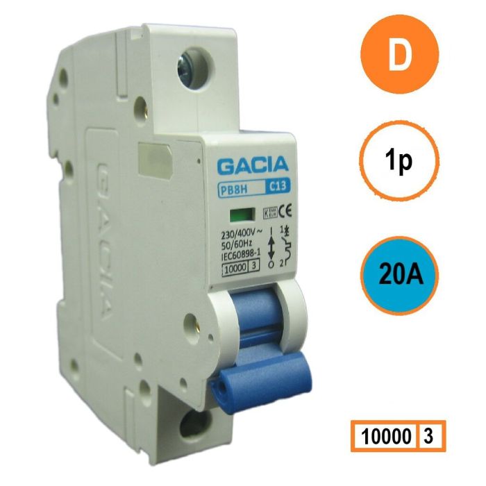 GACIA installatieautomaat 1p, D-karakteristiek, 20A, 10kA