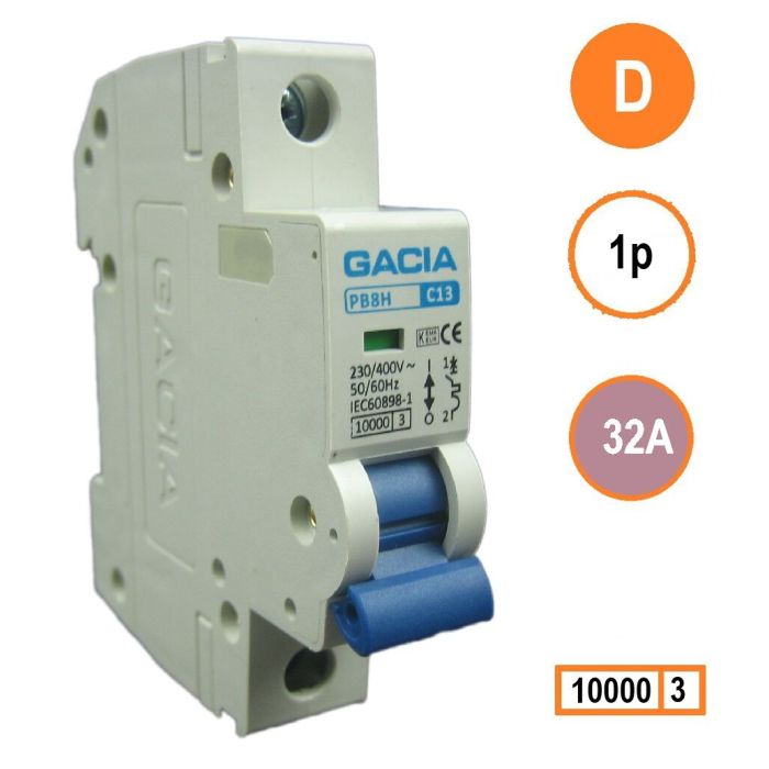 GACIA installatieautomaat 1p, D-karakteristiek, 32A, 10kA