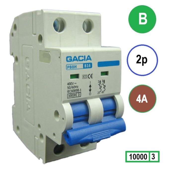 GACIA installatieautomaat 2p, B-karakteristiek, 4A, 10kA