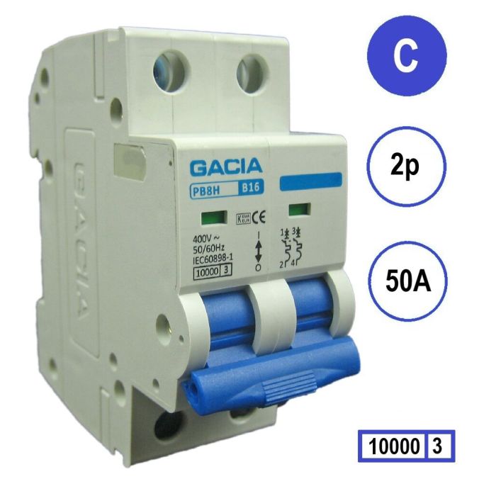 GACIA installatieautomaat 2p, C-karakteristiek, 50A, 10kA