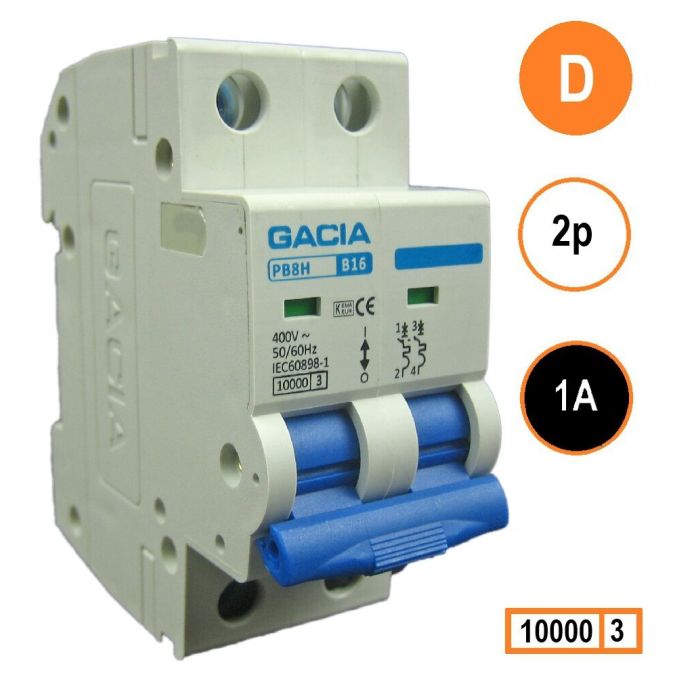 GACIA installatieautomaat 2p, D-karakteristiek, 1A, 10kA