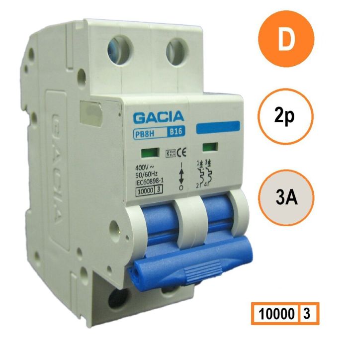 GACIA installatieautomaat 2p, D-karakteristiek, 3A, 10kA