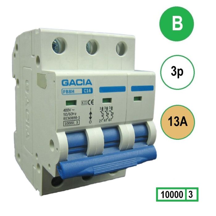 GACIA installatieautomaat 3p, B-karakteristiek, 13A, 10kA
