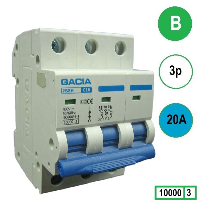 GACIA installatieautomaat 3p, B-karakteristiek, 20A, 10kA
