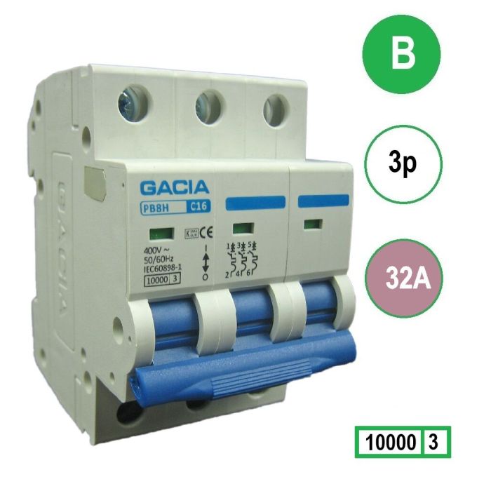 GACIA installatieautomaat 3p, B-karakteristiek, 32A, 10kA