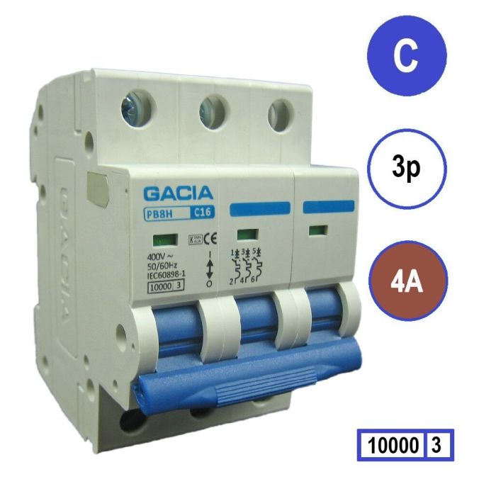 GACIA installatieautomaat 3p, C-karakteristiek, 4A, 10kA