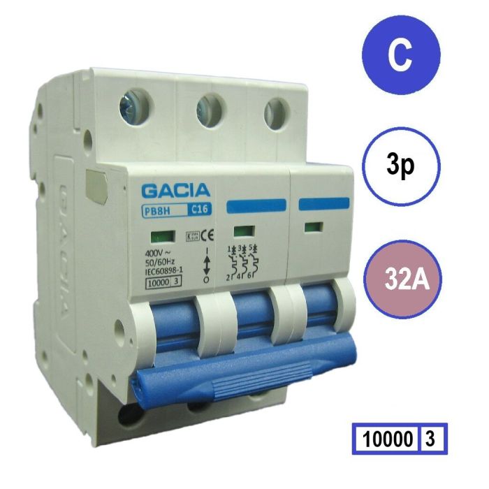 GACIA installatieautomaat 3p, C-karakteristiek, 32A, 10kA