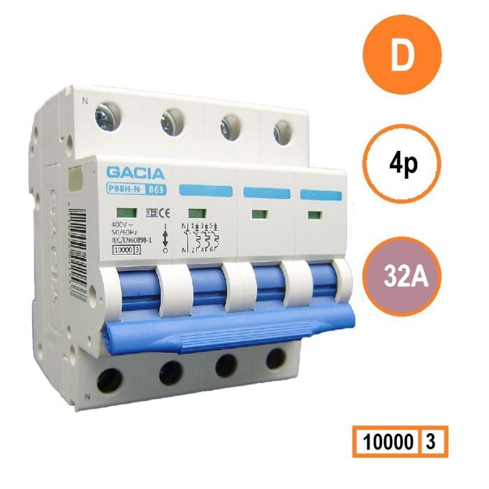 GACIA installatieautomaat 3p+n, D-karakteristiek, 32A, 10kA
