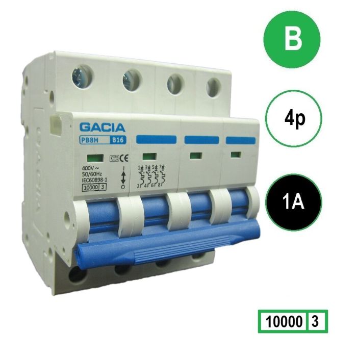 GACIA installatieautomaat 4p, B-karakteristiek, 1A, 10kA