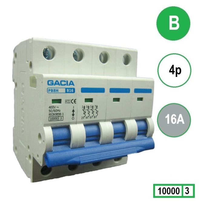 GACIA installatieautomaat 4p, B-karakteristiek, 16A, 10kA