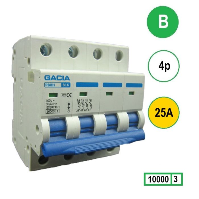 GACIA installatieautomaat 4p, B-karakteristiek, 25A, 10kA