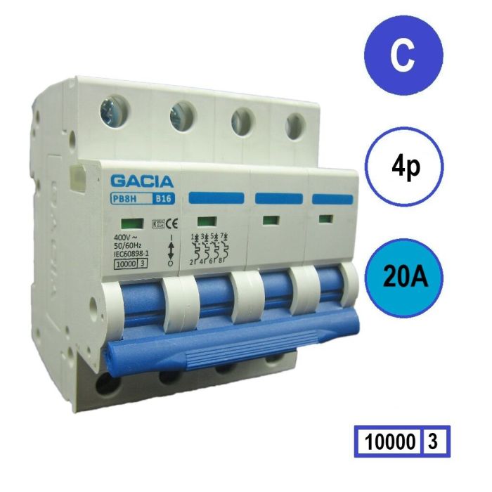 GACIA installatieautomaat 4p, C-karakteristiek, 20A, 10kA