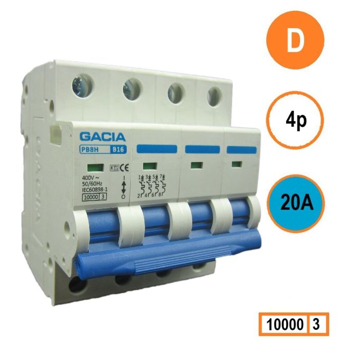 GACIA installatieautomaat 4p, D-karakteristiek, 20A, 10kA
