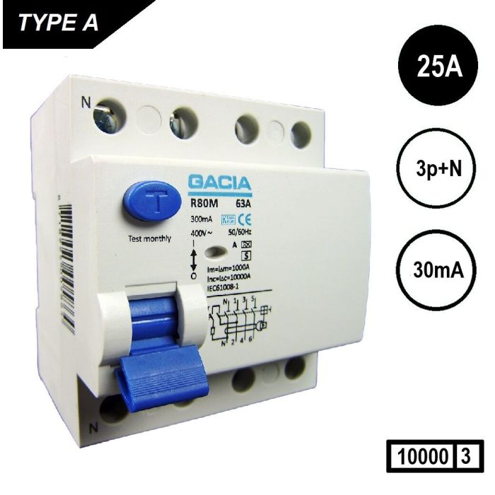 GACIA R80M-2540 Als 4p 25Amp 30mA 10kA