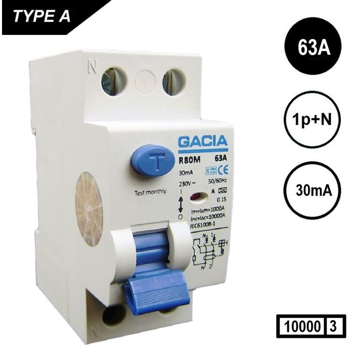 GACIA R80M-6320 Als 2p 63Amp 30mA 10kA