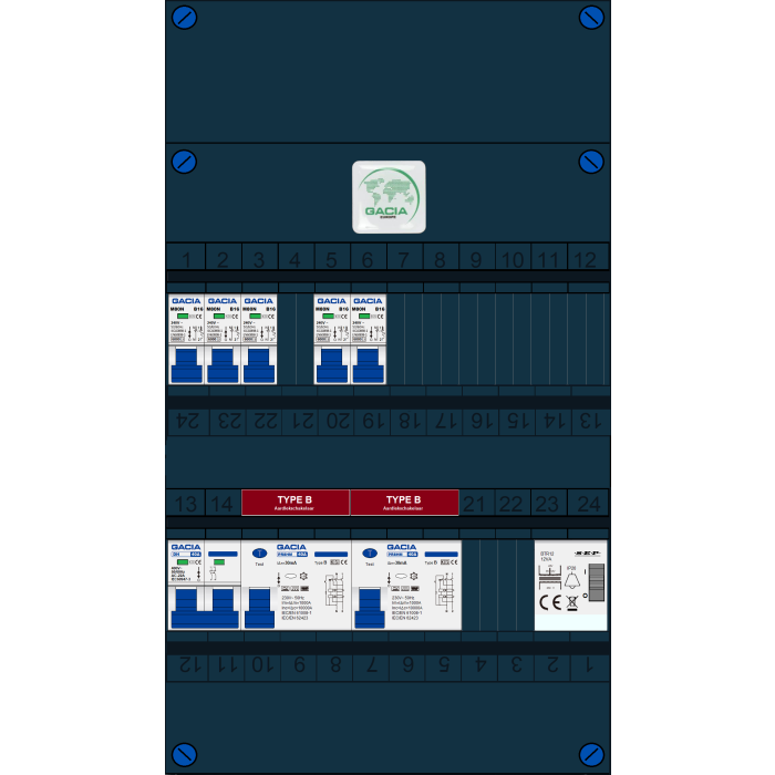 Met de GACIA GACK-B groepenkast is de installatie voorbereid op de toekomst. De aardlekschakelaars zijn uitgevoerd in de TYPE B variant waarmee niet alleen alle functies van een Type A maar ook vlakke DC-lekstromen, grotere pulserende gelijkstromen en gemengde frequenties tot 2000Hz worden gewaarborgd. Hiermee is de groepenkast compleet voorbereid op de nieuwe apparatuur waar power electronics worden toegepast. Doordat de breedte van 220mm gelijk is aan de oude groepenkast is het uitwisselen zeer eenvoudig en hoeft er weinig te worden aangepast. Buiten de standaard leverbare groepenkasten is het mogelijk om een klant-specifieke oplossing aan te vragen. Deze kasten zijn eenvoudig uit te breiden. Alle groepenkasten worden in eigen beheer geassembleerd en getest. Alle componenten worden onder spanning getest, de gebruikte aansluitmaterialen zijn specifiek ontworpen voor deze toepassing. Iedere schroef wordt met de hand aangedraaid op de juiste aandraaimoment.