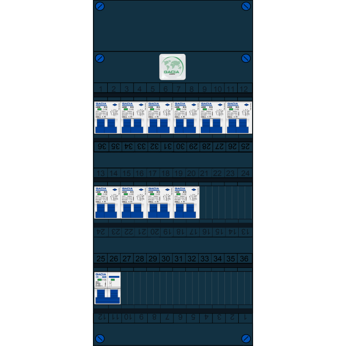 GACIA groepenkast, hoofdschakelaar, 10x aardlekautomaat (1 fase)