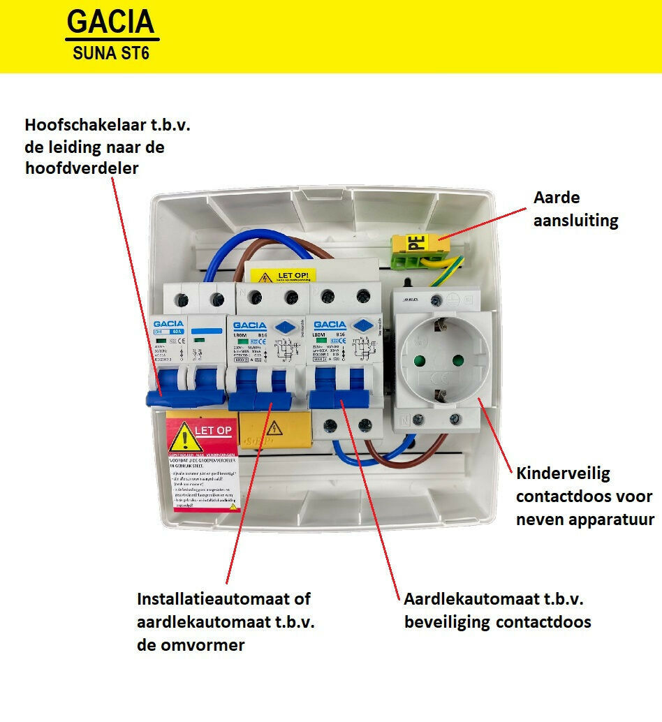 GACIA PV-verdeler SUNA ST6- omvormerbeveiliging aardlekautomaat 1p+n B16/30mA - enkelvoudige contactdoos