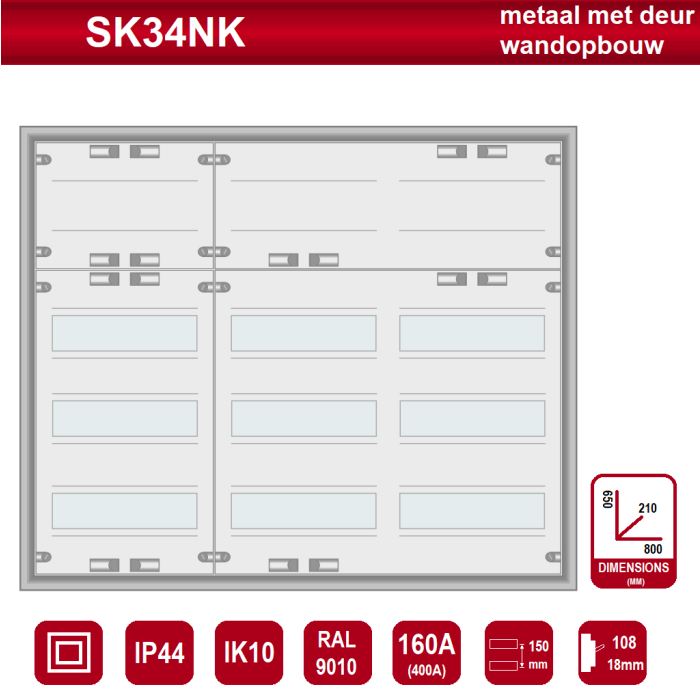 SEP PRO IP44 SK34NK 108mod met klemmenveld (b=800, h=650, d=210mm)